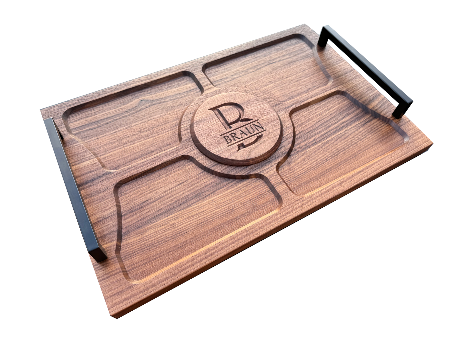 We are proud to introduce a distinctive, customizable charcuterie board designed to elevate your gatherings. Featuring a removable center disk, it allows for effortless customization, making it ideal for any occasion, from holidays to milestone events and beyond.